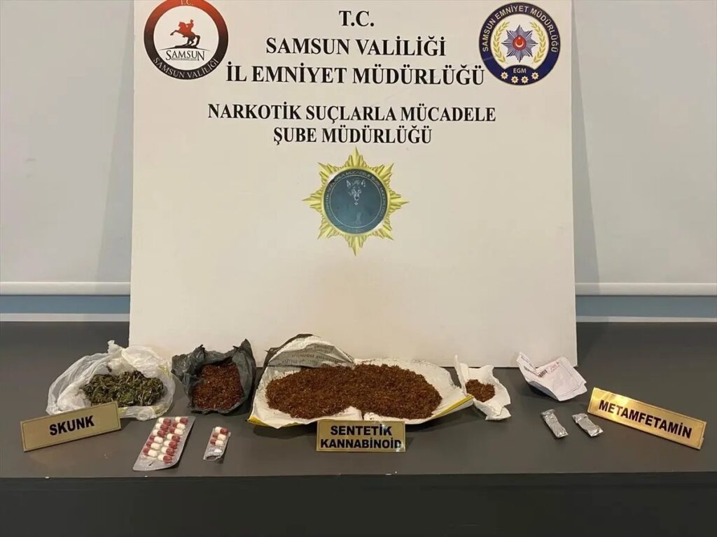 Samsun’da düzenlenen uyuşturucu operasyonunda 3 şahıs gözaltına alındı, çeşitli maddeler ele geçirildi.